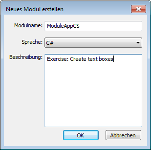 Das Dialogfeld Neues Modul erstellen wird geöffnet.