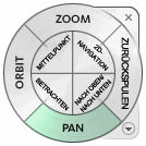 Jedes Rad ist in mehrere Steuerflächen unterteilt. Jedes Segment enthält ein Navigationswerkzeug, mit dem Sie die aktuelle Ansicht des Modells ausrichten können. Die Verfügbarkeit der Navigationswerkzeuge hängt davon ab, welches Rad aktiv ist.