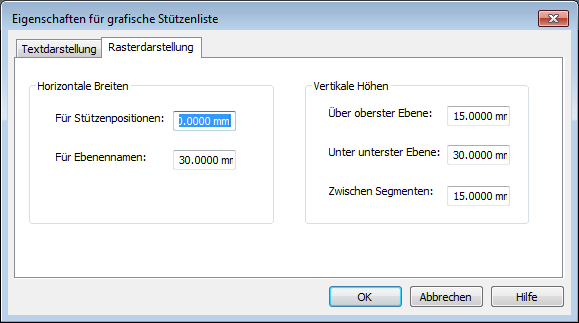 Sie können die Formatierung des Rasters in der grafischen Stützenliste anpassen.