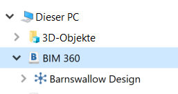 Suchen Sie im linken Fensterausschnitt nach dem BIM 360-Symbol. Klicken Sie, um Ihre Projekte anzuzeigen.