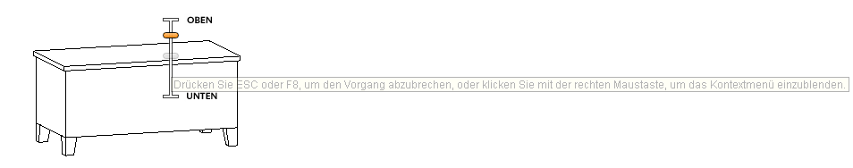 Anders als beim Pan-Werkzeug können Sie mit dem Auf-/Ab-Bewegungswerkzeug die Höhe des aktuellen Ansichtspunkts entlang der z-Achse des Modells ändern. Um die vertikale Höhe der aktuellen Ansicht anzupassen, ziehen Sie nach oben oder unten. Beim Ziehen werden die aktuelle Höhe und der zulässige Bewegungsbereich auf einem grafischen Element, einer Anzeige des vertikalen Abstands angezeigt.