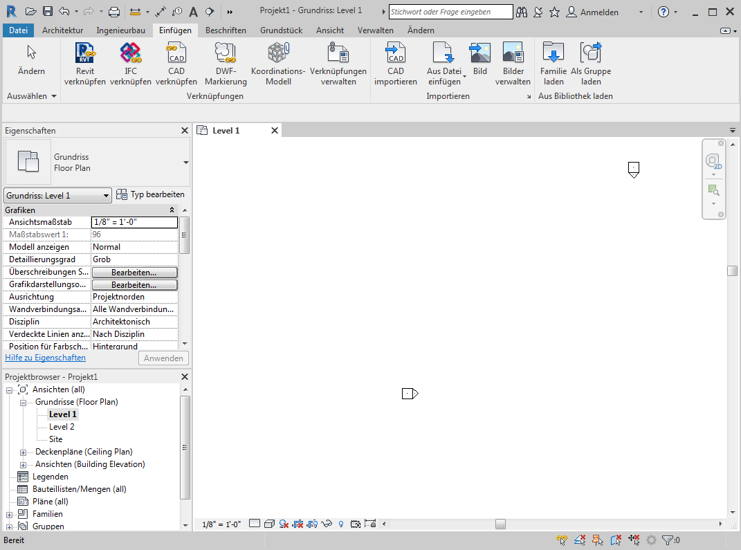 | Anzeigen einer Projektansicht, die noch nicht geöffnet wurde | Navigieren Sie zu der Ansicht im Projektbrowser, und doppelklicken auf den Ansichtsnamen. |
