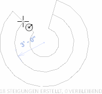 - Wählen Sie das Werkzeug für das Treppenlaufbauteil Spirale in ganzen Schritten, und geben Sie die benötigten Optionen und Eigenschaften an. Weitere Informationen finden Sie unter Auswählen des Werkzeugs Treppenlaufbauteil und Angeben von Optionen.