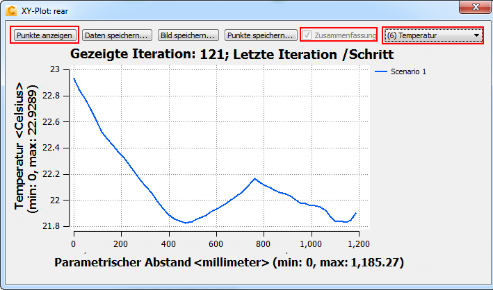 18. Um die Temperaturen bei den hinteren Passagieren zu plotten, öffnen Sie das Dialogfeld XY-Plot (wenn es nicht bereits geöffnet ist). Geben Sie den Titel hinten für XY-Plot ein.