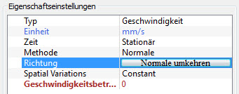 Schaltflächen sind Aktionselemente, mit denen Sie entweder direkt einen Befehl auf den Eintrag anwenden (z. B. die Richtung der Normalgeschwindigkeit umkehren) oder ein weiteres Dialogfeld öffnen (z. B. den Materialeditor). Sie werden im Wertfeld in Textform und ohne jedes Symbol dargestellt. Wenn Sie darauf klicken, wird die Schaltfläche angezeigt, und der Befehl wird aufgerufen: