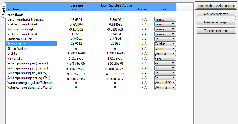 14. Wählen Sie Temperatur, und klicken Sie auf Ausgewählte Zeilen plotten.