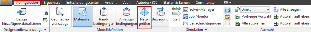 1. Wechseln Sie zum Netz, indem Sie auf der Registerkarte Konfiguration auf Netzgrößenbestimmung klicken:
