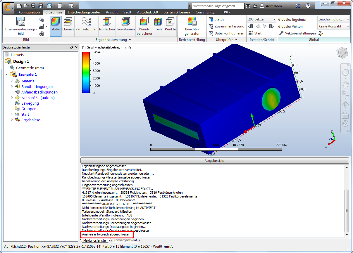 In diesem Schritt starten wir die Strömungssimulation. Die Ausführung dauert etwa 10 Minuten.