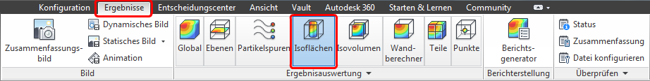 Im vorherigen Schritt haben wir Ergebnisebenen verwendet, um die Ergebnisse in zwei Bemaßungen anzuzeigen. In diesem Schritt verwenden wir Isoflächen, um die Ergebnisse in drei Bemaßungen anzuzeigen.