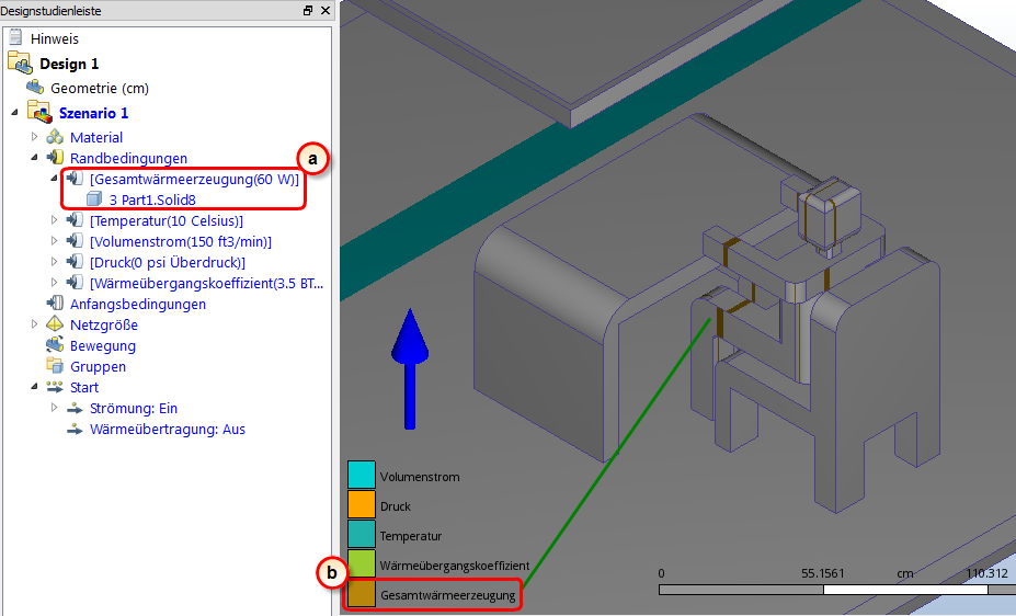a. In der Designstudienleiste sollte die Bedingung Gesamtwärmeerzeugung aufgelistet sein und den Wert 60 W haben.