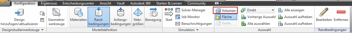 1. Klicken Sie zum Ändern des Auswahlmodus auf Konfiguration(Registerkarte) > Auswahl (Gruppe) > Volumen.