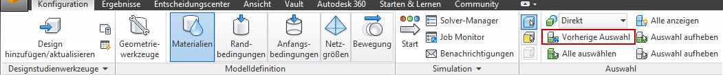 9. Klicken Sie zum erneuten Auswählen der Zuleitungsfläche auf Konfiguration (Registerkarte) > Auswahl (Gruppe) > Vorherige Auswahl.