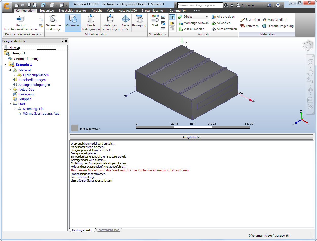 In diesem Schritt wird das Elektronikgehäusemodell in Autodesk® CFD geöffnet.