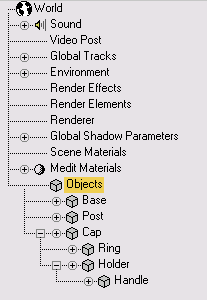 Any hierarchy of object or bone systems can have its joint limits defined. Select all the objects, and turn on their bone or link display. Select the bone or link and open the Hierarchy panel