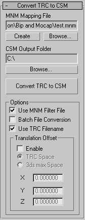 You can use the Motion Analysis Corporation utility to convert motion data originally recorded in TRC format into character studio marker (CSM) format. This allows you to easily map the motion onto a biped.
