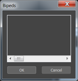 - Opens the Bipeds dialog, which lists all the bipeds in the scene. Highlight one or several bipeds to load them into the Motion Mixer window.