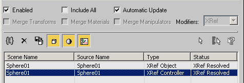 4. On the XRef Objects dialog, make sure Merge Transforms is off, then click (Create XRef Record From File) and select the scene you just saved.