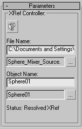 These controls, similar to those on the XRef Object rollout, let you change the file path, file name, and object name of the source of the XRef controller.