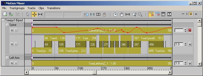 Each track has one or more weight curves that you can use to mix motion from several tracks to varying degrees. The weight curve determines how much a specific track contributes to the motion within the trackgroup.