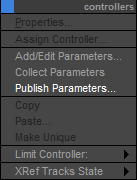 To publish parameters from modifiers applied to the object, choose Top Object Space Modifier. To publish the object's creation parameters, you can choose Base Object.