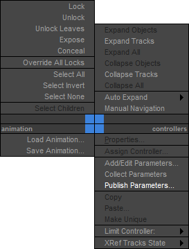 Click the parent object to choose which parameters to publish. When you click the parent object, a pop-up menu displays two choices.