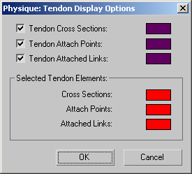 This dialog lets you customize how Physique displays tendons at the Tendons sub-object level.