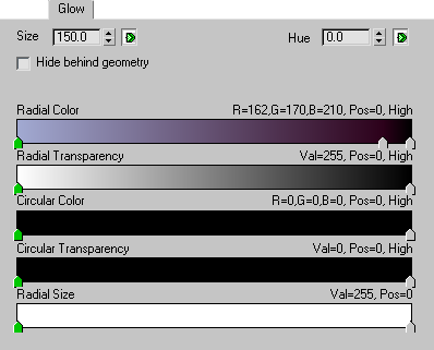 Specifies the gradation of color for the glow. Clicking the green arrow button lets you animate this control. This parameter can be animated.