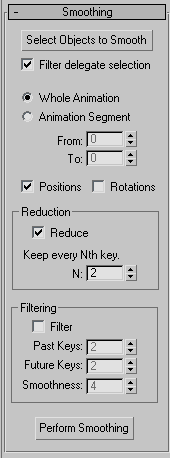 - Opens the Select dialog, which lets you specify which objects' positions and/or rotations to smooth.