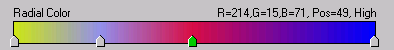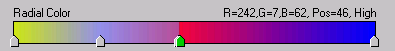 Gradients use Flags to indicate points along the gradient bar where you want different colors or brightness values to be. The colors between the flags are interpolated automatically by Lens Effects. Each Gradient inside Lens Effects can contain up to 100 flags. The current flag is highlighted and green. The position number above the gradient bar indicates the position of the current flag, in relation to the overall length of the gradient.