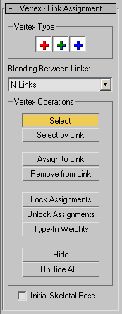 Note: Select, Select By Link, Assign To Link, and Remove From Link will act only on vertices specified by the red, green, and blue Vertex Type (“+”) buttons.