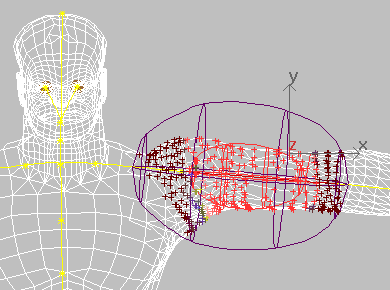 Adjusting falloff, overlap, scale, and other envelope parameters changes vertex weight distribution across links. This change, in turn, affects the way skin behaves as the biped moves. By and large, you correct the way skin deforms on a character by adjusting envelopes.