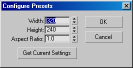 If you use one of the standard formats, the Width and Height spinners are locked to the standard's image aspect ratio, and the Aspect Ratio spinner is replaced by a text display.