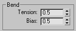 - Displaces the pivot point about which vertices are bent. Bias pushes the effect along the spline toward one side of the joint or the other. The default value of 0.5 centers the bend at the joint. Values lower than 0.5 move the pivot onto the child link. At 0.0, the bend effect is limited to the selected link. Range=0.0 to 1.0. Default=0.5.