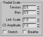Radial Scale parameters expand or contract the skin by scaling the radial distance perpendicular to the link. They apply to any combination of user-definable scale, bulge settings, or link length.