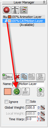 CATMotion Editor on the Layer Manager rollout. This button replaces the Display Layer Transform Gizmo button when a CATMotion layer is highlighted in the layers list.