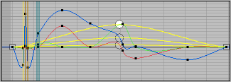 To set a layered offset, click to highlight the circular handle, and then drag it to the desired position. The circular handle follows the curve unless you hold down the Esc key. If you drag while holding down Esc, you can move the handle off the curve, which scales the keys within the range.