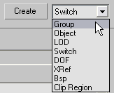 The scene graph list is formatted to show the parent-child node relationships. Child nodes are always positioned below and indented to the right of their parents. Nodes that are on the same indentation level are considered siblings. If a node contains a small plus or minus (+/-) icon to the left of the node icon, this indicates the presence of children nodes. Clicking on the + or - will cause the list of the node’s children to be expanded or collapsed.