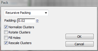 - Recursive Packing (Default option) Packs the clusters efficiently, but is slower than the Linear method.