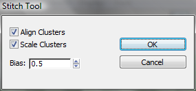 When Scale Clusters is on, Bias sets where 3ds Max derives the scaling of the target cluster(s). At Bias=0, the scale is fully derived from the stitched edges on the source. At Bias=1, the scale is fully derived from the stitched edges on the target. At in-between settings, the scaling is averaged between the two.