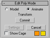 Edit Poly Mode also gives you access to the current operation's caddy, if any, and lets you commit to or cancel out of modeling and animation changes.