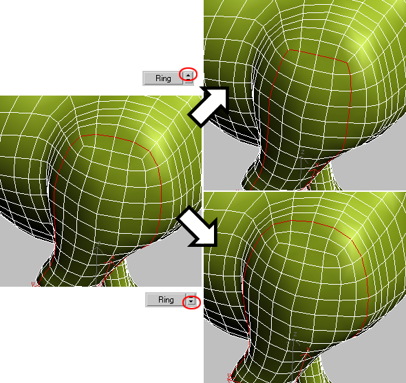 Upper right: Ring Shift up moves selection outward (from center of model).