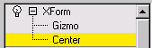 At the XForm Center sub-object selection level, only the Move transform is available. This lets you reposition the center. When you return to the Gizmo level, you can rotate or scale the selection around the offset center. The center position and gizmo transformations are all animatable.