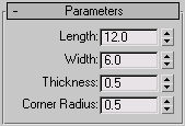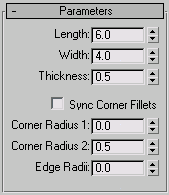 The Parameters rollout is context-sensitive and displays different settings depending upon the built-in section you've chosen to sweep along a spline. For example, more complex sections such as the Angle have seven settings that you can change, whereas the Quarter-Round has only one setting.
