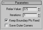 As of version 4, a patch object coming up the modifier stack is not converted to a mesh by this modifier. A patch object input to the Relax modifier retains its patch definition. If a file created by a previous version of 3ds Max contains a patch object applied with the Relax modifier, it will be converted to a mesh to maintain backward compatibility.