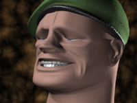 Create as many expression targets as necessary for the character. Joy, sadness, surprise, evil can all have their own targets. Depending on the personality of the character, certain targets, like a terror target, may not be necessary. Targets like nostril flare, jaw-muscle bunching, temple twitching can be effective to give a character an edge. Each morph channel can contain a material as well: as you morph the brows up, a bump map can crease the forehead, for example.