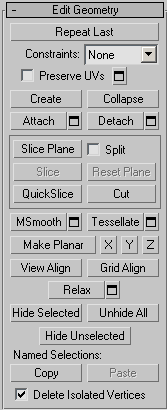 For detailed descriptions of these controls, see Edit Geometry Rollout (Polymesh and Edit Poly).