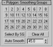 Use these controls to assign selected polygons to different smoothing groups, and to select polygons by smoothing group.