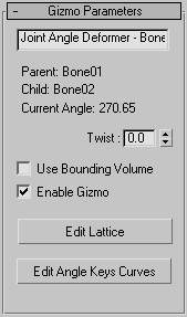 This rollout appears when you add a Joint Angle or Bulge Angle Deformer to the Skin modifier and highlight it on the Gizmos rollout.