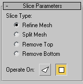 At this sub-object level, you can transform and animate the gizmo like any other object to determine where the slice occurs. Scaling the gizmo has no effect, because its extents are effectively infinite. If you need to limit the extent of the slice, use it on a sub-object selection set of faces, rather than on the entire object.