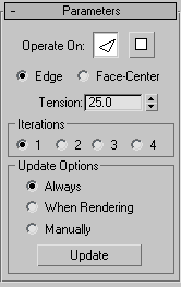 The number of times to apply the tessellation. For example, setting Iterations to 2 is similar to clicking the Tessellation button twice in an editable mesh, except that you can easily back out at any time while using the Tessellate modifier. To obtain additional iterations, apply another Tessellate modifier.